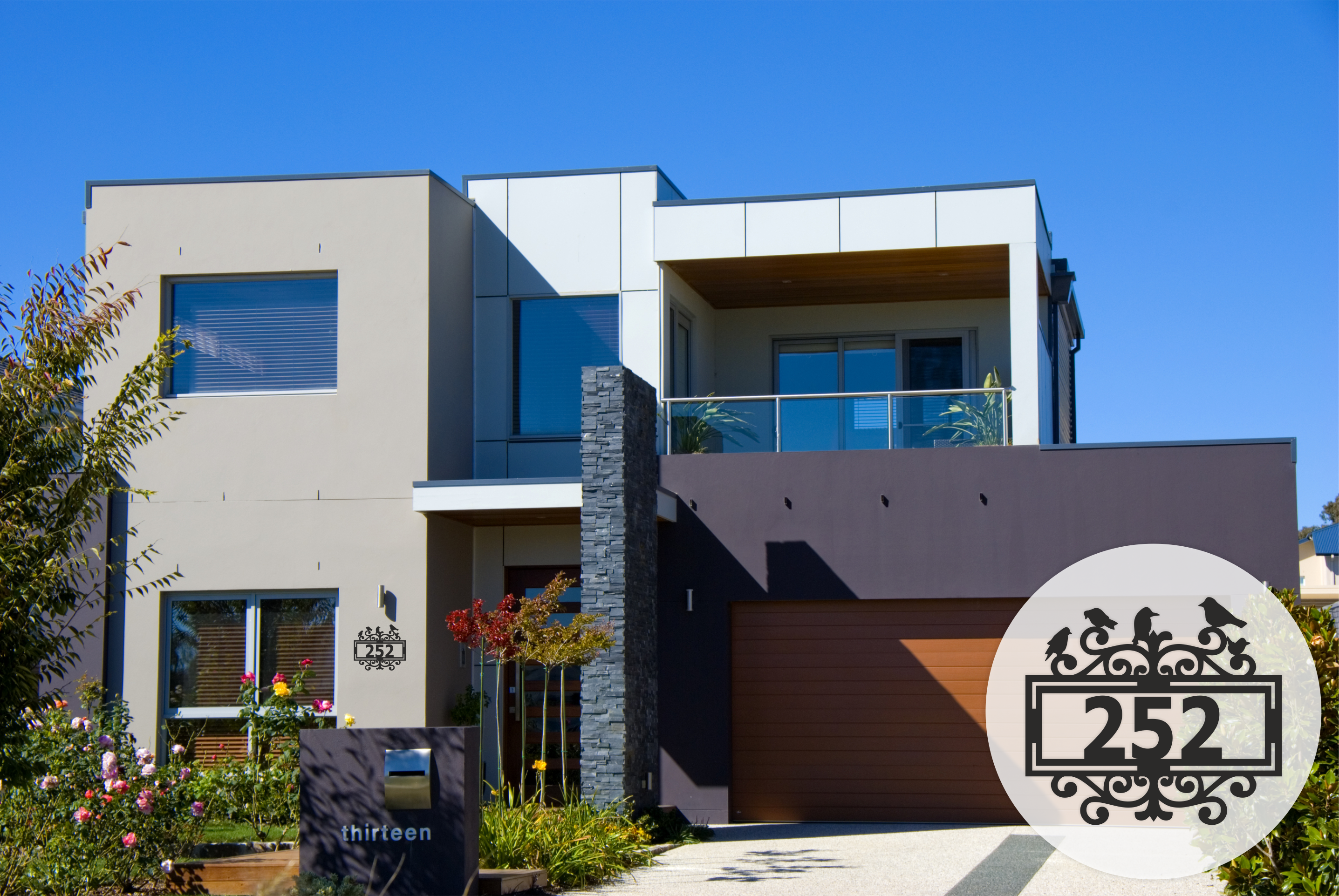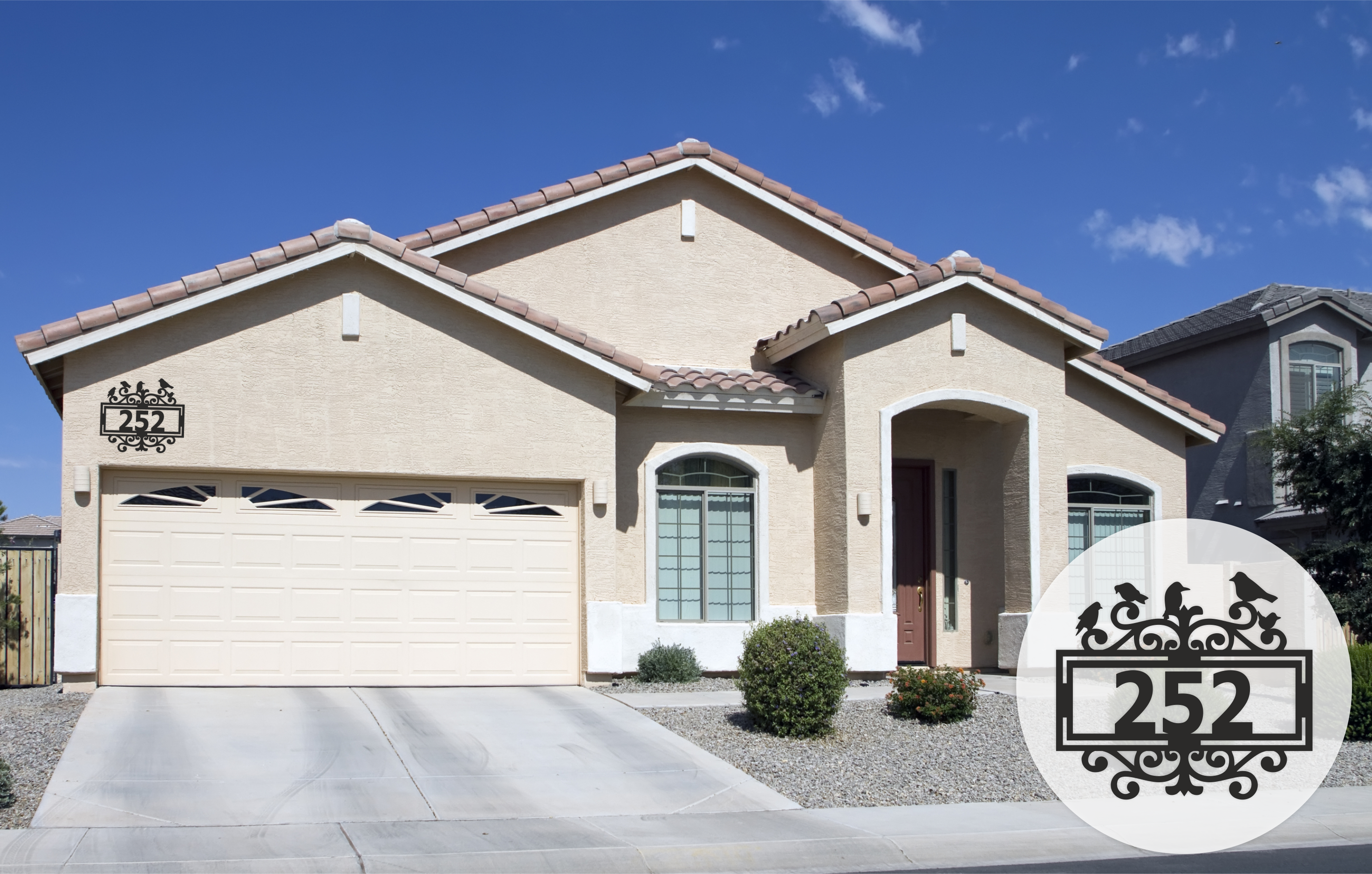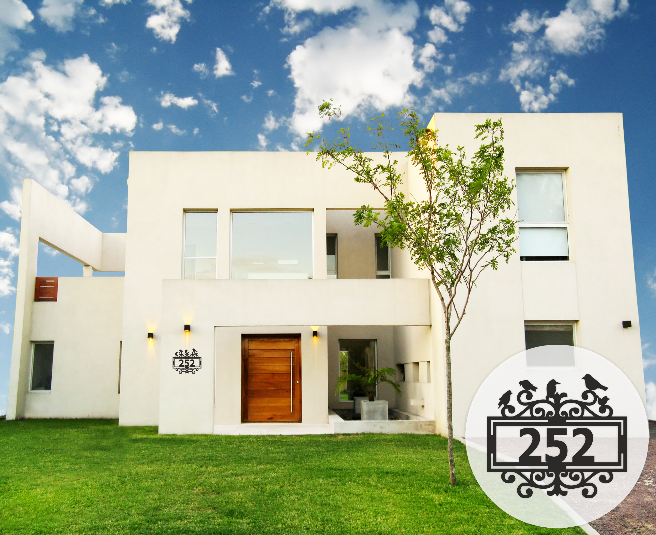 Išskirtinis namo numeris rėmelyje. Tarsi paveikslas atrodantis namo numeris su dekoratyviniu rėmeliu ir paukščiais viršuje – išraiškingas ir jaukus jūsų namų akcentas.